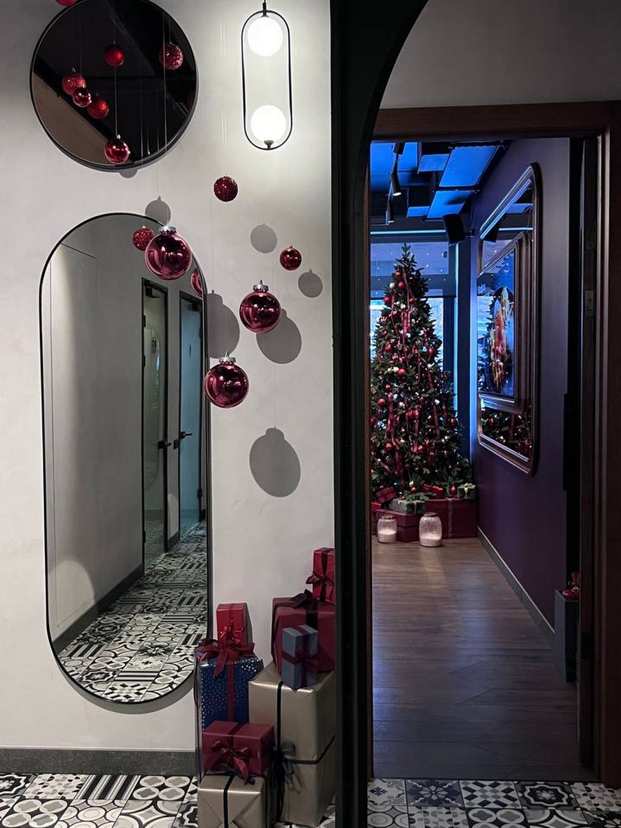- новогодний декор частных интерьеров (декор живой и декоративной ели, комплектация интерьера новогодним декором и игрушками, живые и декоративные новогодние композиции, оформление фасада световыми гирляндами)