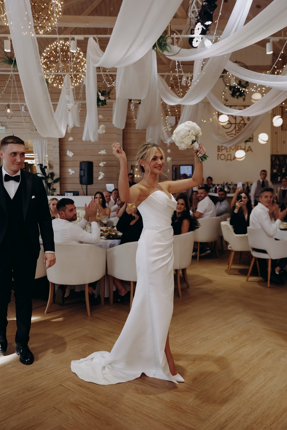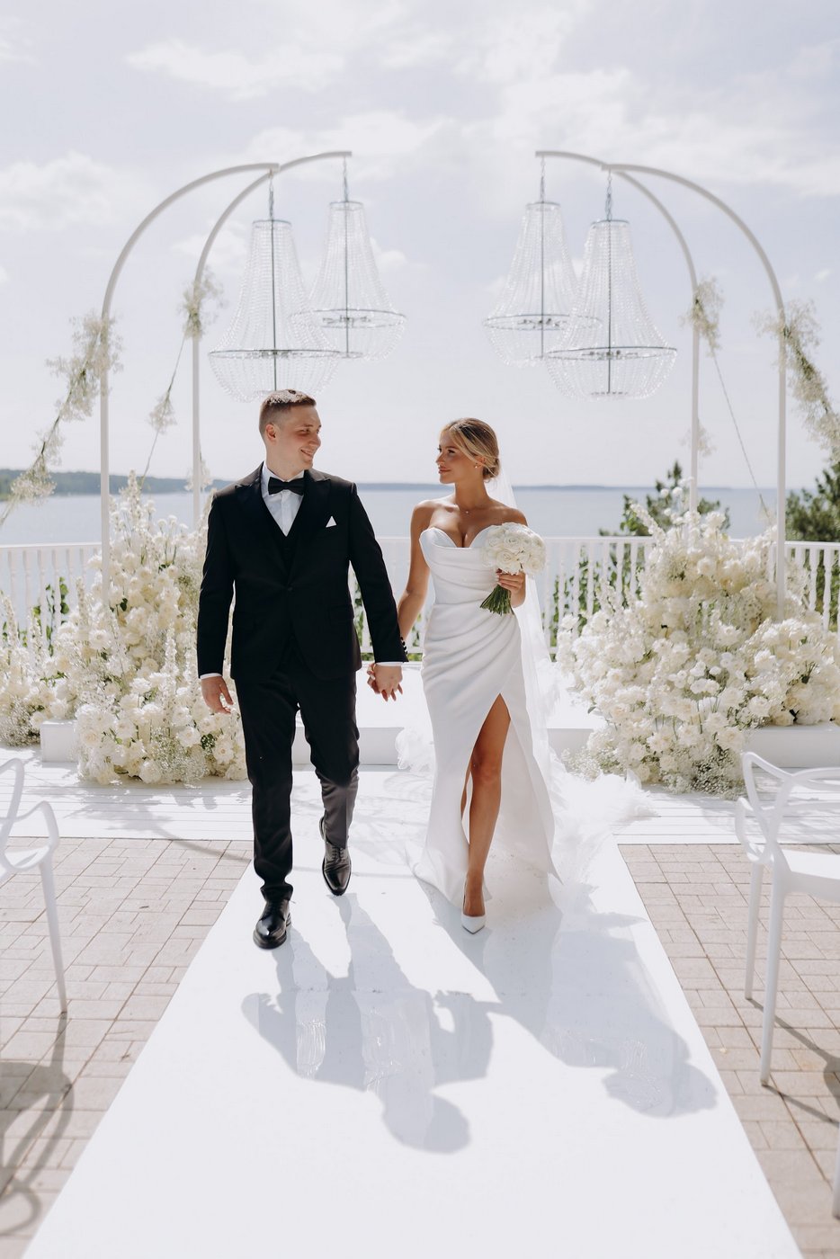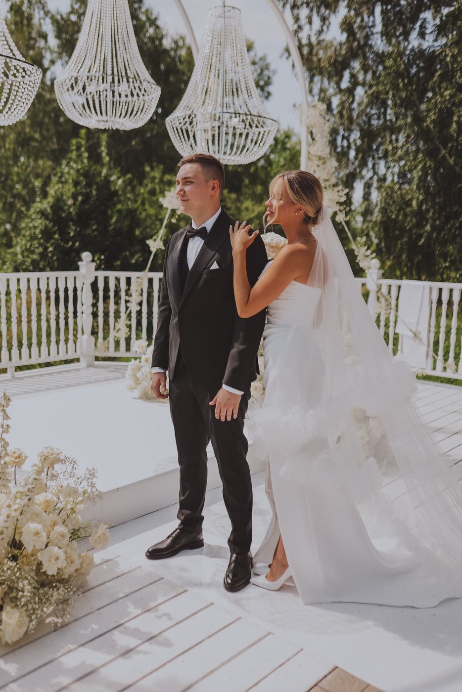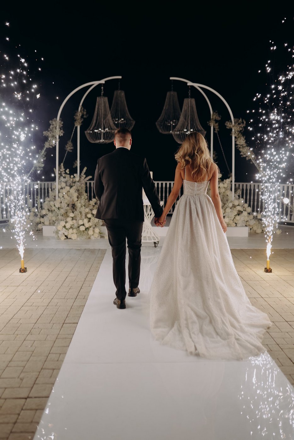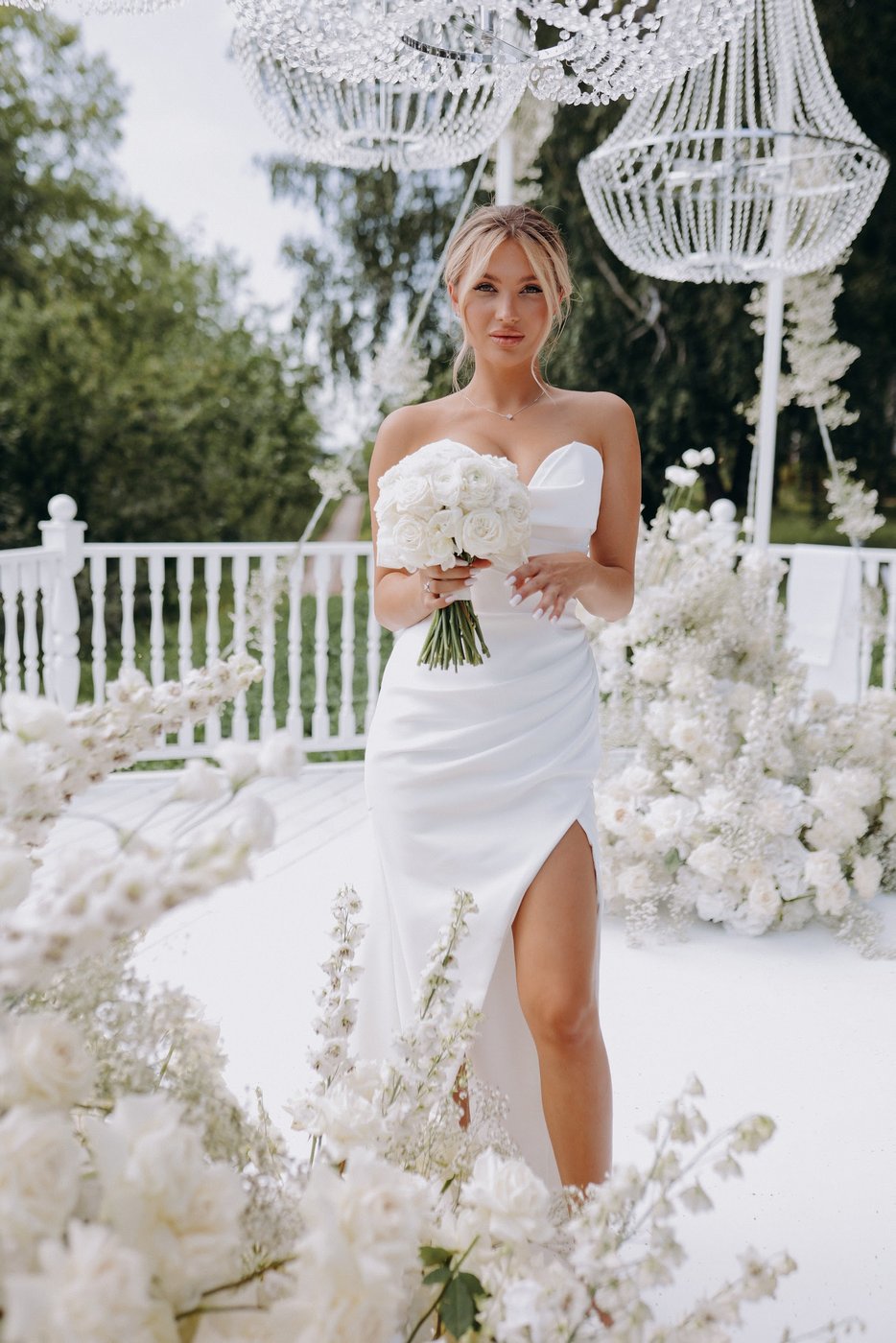 Самый красивый и долгожданный концепт был согласован за месяц до свадьбы, зато результат превзошел все ожидания пары и гостей. Классика, легкая, что-то новое, не арка.