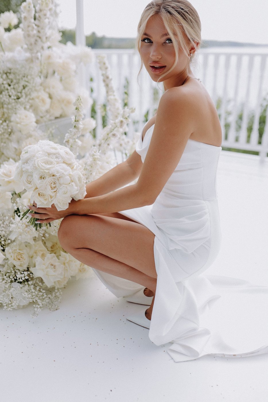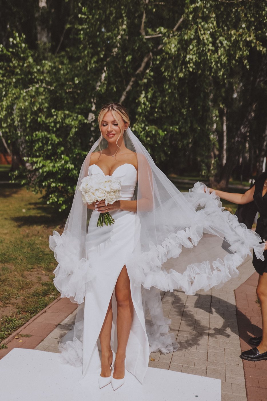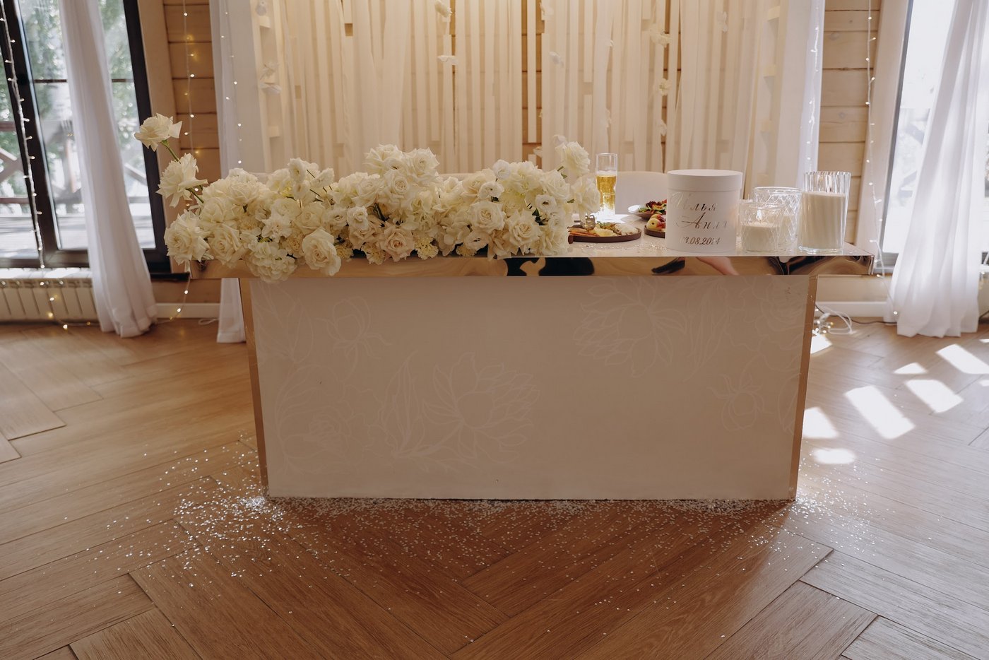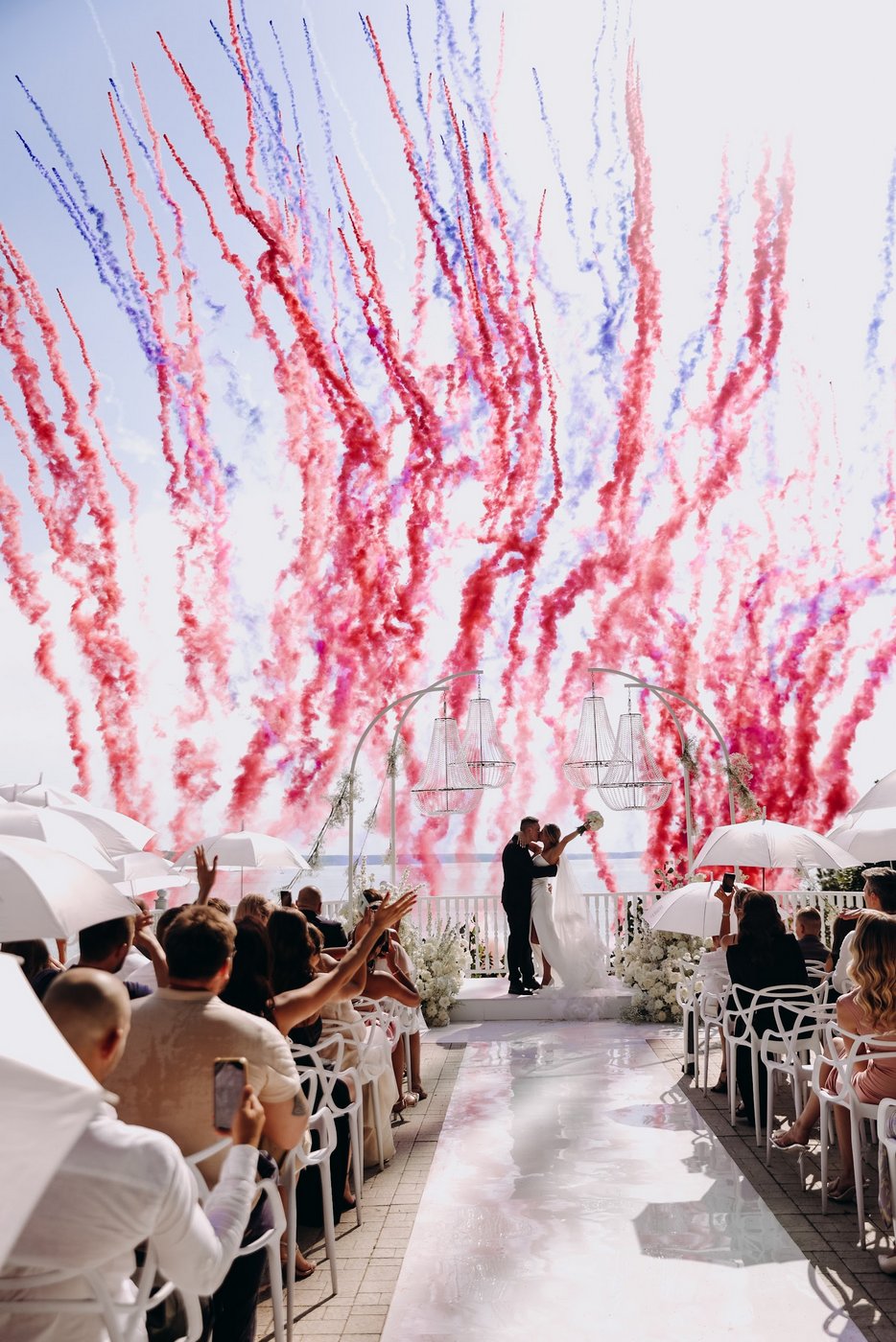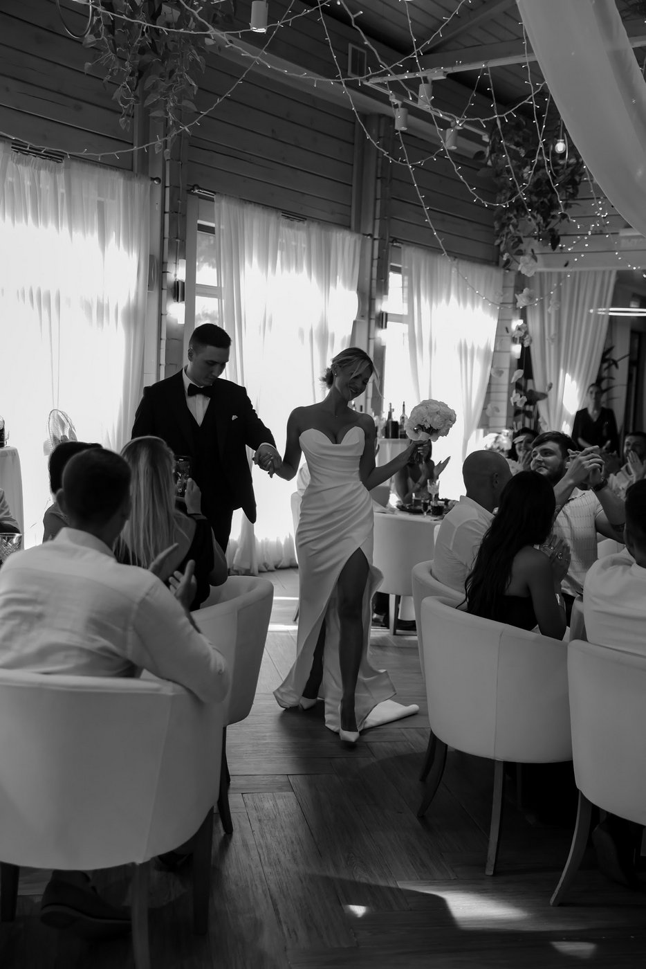 Самый красивый и долгожданный концепт был согласован за месяц до свадьбы, зато результат превзошел все ожидания пары и гостей. Классика, легкая, что-то новое, не арка.