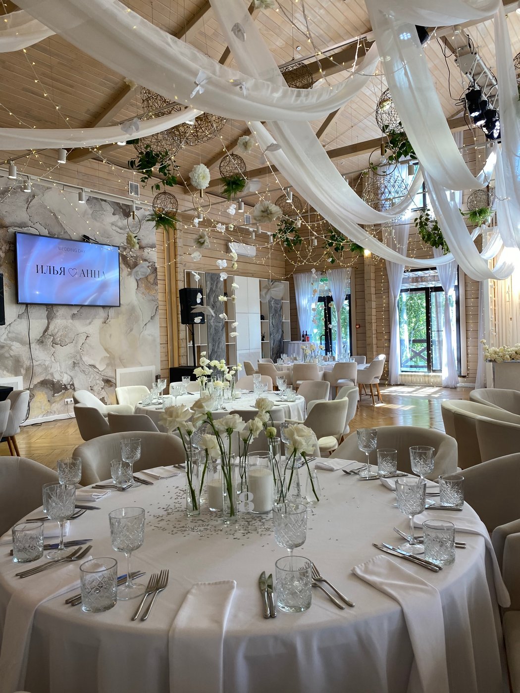 Илья и Аня хотели классический декор на узнаваемой топовой площадке города. И чтобы этот декор отличался от того, что там уже делалось.