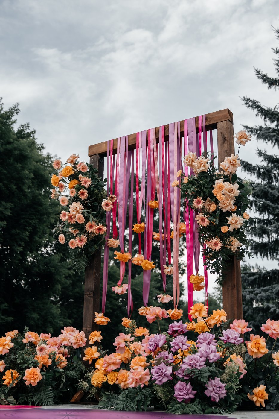 Он был невероятен! Ребята сразу доверились нам и даже до конца не знали, что их ждет. Сложнее всего была неравная борьба с дождем в день свадьбы, намочило арку и встречную зону.
